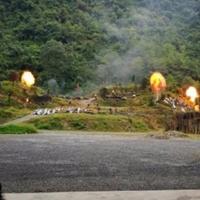 来到娄山关景区门口,没有拥挤的人群、没有矗立的高楼,没有嘈杂的闹声、没有伤身的尾气,唯有的就是青山、绿水、就是鸟啼、欢笑,就是激情、活跃、就是枪炮、坦克,还留有一丝庄重,周围充满着浓浓的红色、战争气,走进景区,富有年代感的画面瞬间瞬间映入眼里,看到很多的红旗、枪炮和碉堡,真的被吓得一匹。(关键是真枪、真炮啊),有射箭项目。还有一些类似军校一样的“训练场”,难度相对来说,还是非常大的。