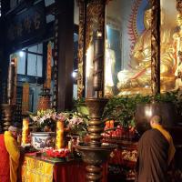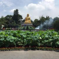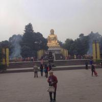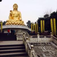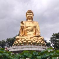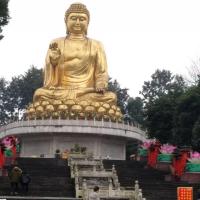 华岩寺香火很旺得地方,整个建筑群与大佛像金碧辉煌,寺内有塔,可以登高看全寺风光,寺旁有个大湖,有许多荷花。公交很方便,可以直达!远远就看到了大佛~ 这是全镀金的大佛,不能上去,只能围观~ 这位佛是释迦摩尼,右手里画的轮盘,听说可以知过去,未来~ 重庆那边佛教协会就在这里,定期有法会~