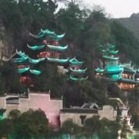 和石屏山隔河相望的是青龙洞景区,景区以万寿宫为主,各亭台楼阁依山傍水,好似一座悬空寺。 远远望去青龙洞的建筑异常的壮观,建筑几乎都是贴在高高的山石上建造起来的,震撼,感慨这些不留名字的能工巧匠的手艺!