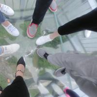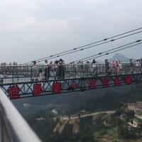 天空悬廊位于梦幻奥陶纪主题乐园内,结构呈现“A”字形,建造在百米高的悬崖峭壁上,全长200米,向外悬挑近70米。它的桥面铺设了全透明的玻璃,在这上面行走,身旁是悬崖峭壁,脚下便是万丈深渊,真是惊险刺激到极点,够胆你就来吧。