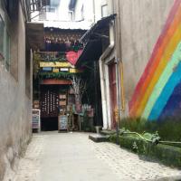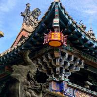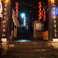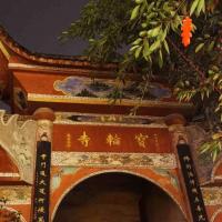 宝轮寺闹中取静,用来形容这座寺庙怕是再恰当不过了。位于磁器口古镇里面。一路逛吃逛吃就来到了这座寺庙的门前。很少在主题街区里面看到的,当门匾出现在眼前,还是小小的震惊了一下。原本是没有来这里参观的计划了,约重庆的朋友在附近吃饭,酒足饭饱后,搜索附近的景点时出现的,便顺路就过来了。刚好散散步消消食。磁器口其实挺大的,而且小路进来后就分叉了两条小路。这座寺庙位于右手边。远远的可以看到墙上若隐若现的寺庙。晚上的时候过来,会更加好看。寺庙用彩灯装饰,灯光的映射下则更加的辉煌壮观。过来的时候刚刚下完一阵小冰雹,渐渐转变为细细小雨。整条古街更加有味道。寺庙的旁边就是一间民宿,在这里放慢节奏,过上一夜,应该也