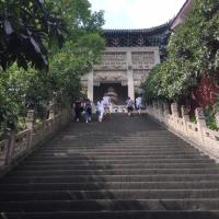 宝轮寺从磁器口古镇往码头方向走,经过路口时会闻到香燭的味道,进寺门票是随意给的。整个寺依山而建,大门到大红雄宝殿要爬一段楼梯,真正的带氧运动。山上空气清新,可以居高临下看到江景,比起下面繁华的古镇,是另一个景象。