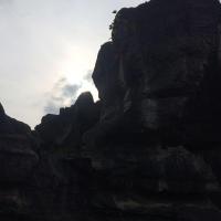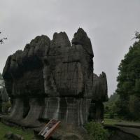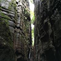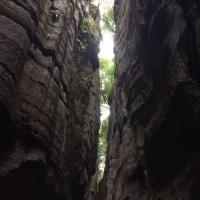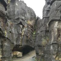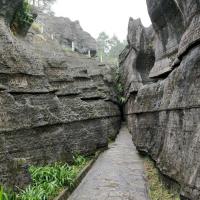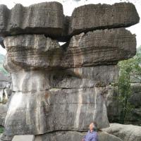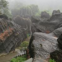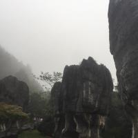 先科普一下,为什么万盛石林又叫龙鳞石海呢,因为园内很多龙鳞石(石头表面文理似龙鳞)。去年升成5A级了,门票80,估计以后得涨。 再说交通,万盛汽车站坐111到两河(石林镇的一个村),再坐摩托车到北门15元,一共用时1小时,下山也可坐摩托车到111公交站,建议从北门进,离主游览路线比较近。以后等到北门的公交车开通了,就应该很方便了,当时由于在修路,说的一周之后开通。 没有去南门的博物馆,全程转了3.5个小时,转的比较仔细,基本所有景点都去了的。感觉很不错,尤其室外的石林,比如石鳞花海,雾石林,石扇。说实话,天门洞比武隆的芙蓉洞差很多。但整体感觉很值,毕竟室外室内都有壮观的石林,让人叹为观止!