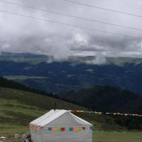 卡子拉山是理塘县最有名的景点了,海拔4718米。因海拔较高,树木就更加稀少,主要是高山草甸。 在这里看山,高处尽是密云,山色层峦叠嶂,一层比一层更远,一层比一层颜色更浅,直至天边,真像行走在‘天路’之上。