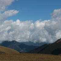 卡子拉山,位于四川省境内,海拔4718米。因海拔较高,树木就更加稀少,主要是高山草甸。在这里看山,层峦叠嶂,一层比一层更远,一层比一层颜色更浅,直至天边,真像行走在‘天路’之上。 翻越卡子拉山时,雾气开始散去,空中的云彩开始多起来,一会是洁白无瑕,一会是幽暗迷幻,瞬息万变。不过,只有在她的怀抱之中才能感受到这美幻的景色。