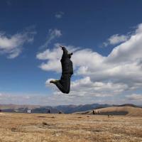 卡子拉山位于四川雅江附近,海拔4718米,山上光秃秃的,没什么植被,我们驾车到达卡子拉山,在这高海拔上奋力一跳,太牛了吧。这里风景很美的,可以下车拍拍照片。