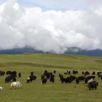 卡子拉山,海拔4718米。因海拔较高,树木就更加稀少,主要是高山草甸。在这里看山,层峦叠嶂,一层比一层更远,一层比一层颜色更浅,直至天边,真像行走在‘天路’之上。卡子拉山,海拔4718米。因海拔较高,树木就更加稀少,主要是高山草甸。山上平坦如草原,触手可及的天空与星星点点牦牛、马群,构成了卡子拉山的美景。