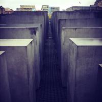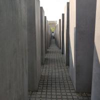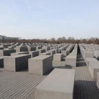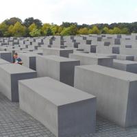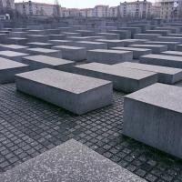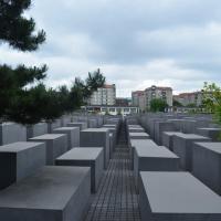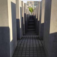 位于柏林市区的欧洲被害犹太人纪念碑是一大片的高低不等的水泥长方形柱子组合而成,设计也很巧妙依据地型的变化。暗灰色的水泥森林显得庄严阴冷。走在里面感觉一阵无形的压力,又像迷宫似的