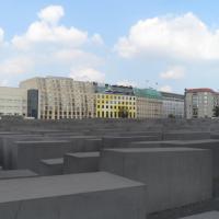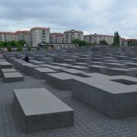欧洲被害犹太人纪念碑的设计非常大胆,广场上超过三千块平滑巨大且灰暗的混泥土块,好像述说着数百万被害的犹太人无辜地在战争中被屠杀,行走在方方正正、巨大无声的混泥土块之中,令人觉得毛骨悚然、战争的可怕。