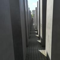 欧洲被害犹太人纪念碑群由建筑师彼德•艾森曼(Peter Eisenman)设计,于2003年至2005年间在柏林市中心勃兰登堡门附近建成。人们可从四个方向走入碑群,并从碑群的间隙瞭望周边的建筑和景色。由纪念碑群的东南侧沿台阶或乘电梯可到达一地下信息厅,展厅的设计风格与碑群的块状外形风格相一致,介绍了有关被害者、受难地及今日各纪念地的信息。 还是很震惊的。