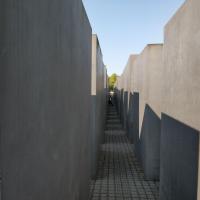 犹太人大屠杀纪念碑群,艾森曼的设计从根本上打破了纪念碑的概念,放弃了任何一种象征性符号的使用。由2711个水泥碑组成的网状通路有许多出入口并可供参观者任意穿行。2711这个数字是建筑师根据纪念地的面积而定的,它没有任何象征意义,与被害者数目也毫无关联。碑体的材料是十分坚硬的灰色自动密封式混凝土,碑体的生产是在柏林附近。为保证碑体表层的质量长久不衰,在生产过程中采用了多层加工方案,这样也可方便地清除涂鸦痕迹。由纪念碑群的东南侧沿台阶或乘电梯可到达一地下信息厅,展厅的设计风格与碑群的块状外形风格相一致,介绍了有关被害者、受难地及今日各纪念地的信息。这个博物馆是免费的,并有中文的介绍。根据艾森曼计划