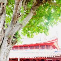 开元寺地处闹市,仅靠一道象征性的紫云屏与外界隔绝,有一种“小隐隐陵薮,大隐隐朝市”的意味。庭院内古榕参天,阴翳蔽日,更是平添了几分清幽。 大雄宝殿居于中轴线上,迄今已有一千三百余年的历史,以“工艺精巧、巍峨壮观”而著称,既是该寺最早的建筑,同时也是该寺最主要的建筑。 两座古塔一东一西,掩映在绿荫与古厝之间,久经风雨考验,依然如同巨人一般傲然耸立。