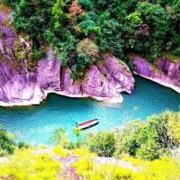 石桅岩风景不错,特别是小三峡。建议从小三峡入口进景区,最后,看石桅岩。从草坪坐船到水仙洞,不要爬栈道,太累了。早点去,八点钟左右吧,景区里面人少。十点以后人多。正门进的,旅游团较多。