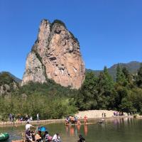 石桅岩很不错的景点,一块300多米的巨石横亘在青山绿水之间,景区玩起来也不累,几十米的游船也挺有特色的。