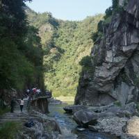 去石桅岩我们是从西门进的,大门在公路的下面,不容易发现。不久就到了小山峡,景色不错,水有多种颜色。