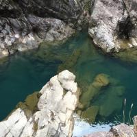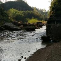 永嘉石桅岩,我们那天去的是下午,阴天,幸好没有雨,到了景区,就可以看到溪水清澈见底,水深的地方,很绿,旁边有一片竹林,环境很好,越是走到里面,溪水越是很急,可能是刚下过雨吧!