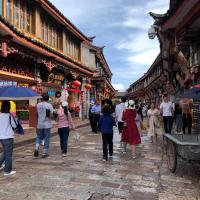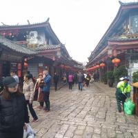 四方街,位于丽江古城中心,交通四通八达,周围小巷通幽,据说是明代木氏土司按其印玺形状而建。这里是茶马古道上最重要的枢纽站。本想找找原住民的区域,看看古城原住民的生活,可是走到角落依旧难见到原住民,古镇特色也越来越趋势化