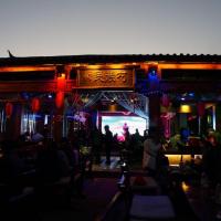 丽江古城四方街晚上比较热闹,当地少数民族大姐大妈组织跳跳舞,经常可以看到这些纳西族老奶奶围成一圈,跳着民族舞蹈苍老的脸上布满纵横交错的沟壑,但却个个精气神十足这也是一种锻炼身体的方式。路过的旅客也会跟着带动下气氛,气氛比较活跃。适合饭后散步