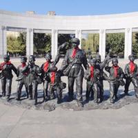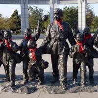 雷锋纪念馆的整体景区范围还是很大的,在没进入景区之前是一个群雕,后来我查阅到雷锋在1962年被评为优秀校外辅导员。 进入景区,首先映入眼帘的就是地面中间一直延伸向前的五角星,这应该象征着雷锋是一名军人,两侧黑色的大理石上都是雷锋日记。五角星尽头是一组长长的浮雕。再向前走不久,就是高耸入云的一座纪念碑,上面是“向雷锋同志学习”的题词,提词的四面雕塑都不同。 纪念碑后面就是雷锋纪念馆,展馆一共有两层,免费参观,周一闭馆。一进入纪念馆,就到达序厅,序厅中央矗立着一座汉白玉雕塑,名为“永恒的丰碑”。环绕整个序厅的是《青山魂》 ,它是目前国内最大的山水画青铜浮雕。在顶部蓝天白云的衬托下,并有背景为深蓝到