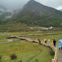 稻城亚丁一个悠闲、神秘的地方 果断放弃牛奶海,五色海。毫无压力的在下面的栈道自娱自乐 能走多远走多远!自驾的乐趣就在于一切未知,也正因为如此才令人神往。我们同行的每个人今天都出现了不同程度的高反 历尽千辛 翻山越岭 跋山涉水 但是风景还是超级赞的