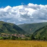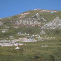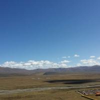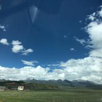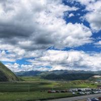 塔公草原两旁的山间云雾缭绕。从新都桥去向塔公草原,沿途美不胜收。当到了塔公草原,映入眼帘的是雅拉雪山,连绵的一长排,仿佛离我们好近。蓝天白云辉映下尤如仙境,太美了!