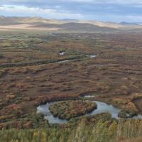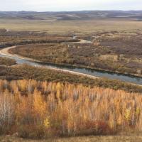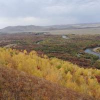 去年十一长假去的根河湿地,绿色已褪去,山川河流略显苍凉,唯余莽莽。湿地水小了很多,树木的叶子凋零变色,草原上的草已打草完毕,露出黑土,秋风萧瑟。