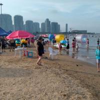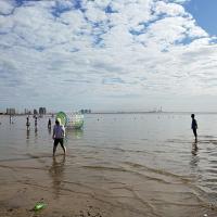 我们就在止锚湾着玩的,浪小人多,水挺暖喝的,小宝宝还能接受,水不是很干净,但是喜欢玩的人可以往里走,里边还有一个海滩,水比较干净,浪大,人没那么多。色还可以,海水很咸,不算清澈,趣味性很强,性价比还可以。
