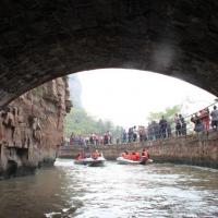青年洞乘船穿越是一个单独收费项目,一个来回也就两三分钟,如果不是客户招待我是不会进去的,里面要小心石壁撞头,船速很快,拍照都是虚的,有很多彩色的照明灯,有一种西游记妖精洞府的感觉.由于是水洞所以夏天很清凉