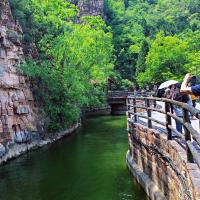 人工天河——红旗渠青年洞,是60年代林州人民为彻底改变严重缺水的恶劣生存和发展环境,凭着一锤一钎一双手,苦战十年,削山凿洞,在太行山悬崖峭壁上建成的全长1500公里的大型引水灌溉工程。建议沿红旗渠走一遍,不累,基本都是平路,至青年洞乘观光车(12元)下去。