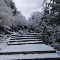 我们是四月初去的四姑娘山,可能是我们的运气好 ,住在长坪沟附近酒店,当天下午到的,第二天早上起来一看惊讶了,白茫茫一片,夜里下了场大雪,看到了少有的景色,因为温度较高,中午去的就没看到那样的景色,一个字,美!