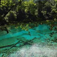 到了五彩池这里,只能不停感叹自然的鬼斧神工,相机不停的咔咔咔 五彩池,绚烂多彩,清澈的湖水下各种植被以及湖底钙化的树木和碧蓝的湖水共同打造出这一美景,不愧是九寨之眼,名不虚传。