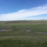 那个被誉为“天下第一曲水”的莫日格勒河。金帐汗蒙古部落也位于附近。 不同于上次来时的阴沉天,6月的莫尔格勒河畔已是草浪滚滚,野花盛开,马嘶羊咩。 莫尔格勒河以“曲”闻名于天下,蜿蜒蛇行的河水在广阔的陈巴尔虎草原从东北一直流向西南,经美丽的呼和诺尔湖汇入海拉尔河。河长319公里,可如果将弯弯曲曲的河道加起来,竟有上千公里。 来来去去,百转千回,莫日格勒河就像条飘落的柔软绸带,轻盈婉约,系在草原的腰间,流淌在呼伦贝尔广袤的草原上。 【莫尔格勒河】 景点位置:内蒙古呼伦贝尔市陈巴尔虎旗境内 交通 在著名景点金帐汗游牧部落旁,可乘去往拉布大林方向去的班车,告诉司机在“金帐汗”下车,金帐汗和莫尔格勒河可