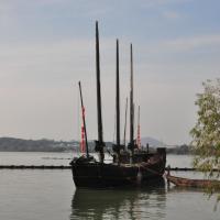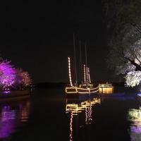 鼋头渚很值得去,樱花季去赏夜樱更美。这艘船就是特意停在这给大家拍照的吧?挺应景的,有一种黑夜即将过去、黎明即将起航的寓意。