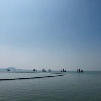 驶入到鼋头渚湖中央,数以千计的红嘴鸥围绕着船四周,竞相争夺游客投喂的食物,能如此近距离的接触这些来自遥远国度的红嘴鸥还是第一次。
