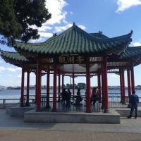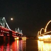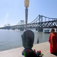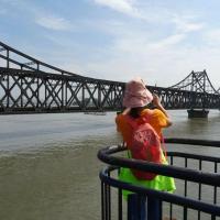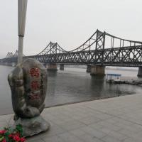 鸭绿江公园边,直面对面朝鲜国。很干净的公园。就是河边兜售产品(尤其是朝鲜特色产品)的大妈略烦。从断桥往回看公园和城市,感觉确实发达太多了,与对面相比。