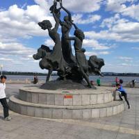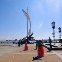 鸭绿江公园就沿着鸭绿江岸建成,包括鸭绿江大道、鸭绿江大桥、鸭绿江断桥和雕塑与绿化,鸭绿江公园的正门是一个巨大的雕塑,我查询了一下,应该是抗美援朝的纪念雕塑。公园里有很多穿朝鲜服饰拍照的,挺有特色的。