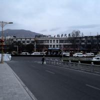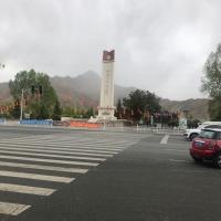 青藏川藏公路纪念碑是围起来的,有兵哥哥在站岗,不能近前去看,拍了两张照片,纪念碑整体很有气势,旁边还有灯笼点缀,对面就是中国电信,其实是想走上前去的