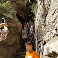大金湖总体来说还是愉快的,整个游玩不算太累,大部分时间是坐船,第一个景点看甘露岩寺,还是挺不错的,独特的一道风景线,第二个景点主要是走斜线天,有点陡,走起来很有意思,第三个景点就相对差了点,就是一个瀑布