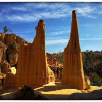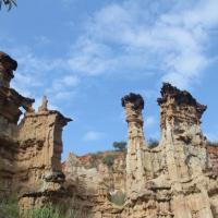 元谋土林这里土林高大挺拔,造型多似古代宫庭殿堂,宏伟壮丽。“元帅府”则以动物造型为特色,这里的土柱形态酷似各种飞禽走兽,惟妙惟肖。而“古堡幽情”的景观色彩丰富,以赤、褐、黑三色土帽盖顶而著称。