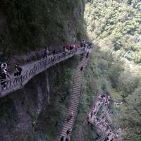 新昌十九峰景区值得玩吗?十九峰景区景色不错,大门票不包含飞龙栈道,要单独再买一次票,走999台阶基本到山的上半,然后就是沿着山腰走,有一段玻璃栈道,玻璃栈道有个观景台可以排队拍照,然后走过一座铁索桥就到另一座山峰,可以陆续下山了。在山顶看下面的风景非常不错,去的那天是阴雨天,如果是晴天风景应该会更美吧。