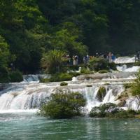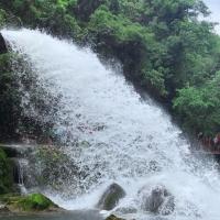 小七孔景区里68级跌水瀑布是最好看的景点了,这里层层叠叠的瀑布,淙淙哗哗倾泻而下,随着地势变化,时而湍急时而平缓,形态各异,基本上形成了瀑布与潭水,河床与绿树相结合的美丽画卷。瀑布从上游冲刷下来,遇到地势平坦的地方就形成了碧绿的潭水,遇到地势低洼的地方就形成了无色透明的小型瀑布。随着我们不断向景区内深入,瀑布的跌水效果也越发明显。路边的大瀑布,游客从瀑布旁边经过,衣服都会被打湿。