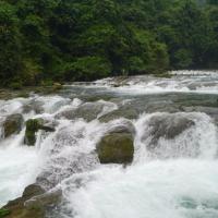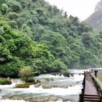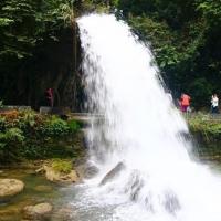 小七孔景区涵碧潭上游长1.6公里的狭窄山谷里,沿高高低低的河床,错落着68级瀑布和跌水。专家们考证,如此众多而密集的瀑布、跌水,实属全国罕见。层层叠叠的瀑布,形态各异,气象万千。千姿百态的瀑布跌水竞领风骚,争奇斗妍,构成风情万种的动态水景,令游客目不暇接。沿河谷伴梯级瀑布而上,一路但见高山流水,但闻泉鸣瀑响。