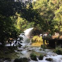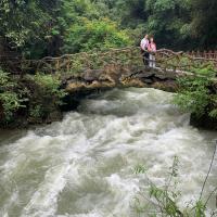 荔波小七孔景区8点不到就可以窗口取网络票,并该窗口可以直接加购观光车票,方便!我们暑假7月份去的多雨水量大涨,美丽的小七孔古桥没有往日的秀气,但也正因为水流量大,景区内的瀑布超级壮观,所以瀑布都气势磅礴,看的我们感叹万千,不虚此行啊!特别要提到景区内卫生很好,卫生间很干净还配有纸巾。绿谷瀑布这块可以涉水的地方,还有工作人员用刷子刷青苔,以防游客摔倒。景区内工作人员服务态度真得很好,引导到位,不管是景区咨询还是观光车司机等都要给大大的赞!