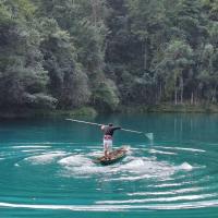 贵州荔波小七孔值得一游,景色宜人,山清水秀的好地方,古桥边小歇会儿,非常养眼的地方,这里的水是绿色的,很清澈的可以看到水里面游的鱼,遇到水面渔夫踩水表演,非常精彩