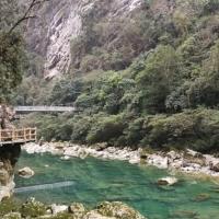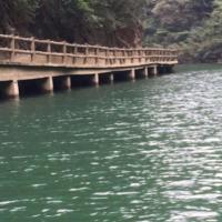 大七孔景区的水是如此清澈见底;河边的山峰高高耸立,树木青绿,两边是沿山脚修建了行人栈道,步行栈道比较狭窄,加上景区面积不是很大,整个景区的线路是一个环线,游览时间大概2个多小时,步行进入,全程没有观光车。游船的价格,往返是40元;想体验的朋友可以在返程的时候乘坐回来。一进检票口,就可以看到伫立在左边的七孔桥,像新修不久的拱桥;步行几分钟,就可以达到坐船的渡口,打算返程的时候体验一下,但是想着景区并不是很大,明天行程是到小七孔景区,也可以体验到乘船的乐趣,就放弃了再大七孔乘坐游船的念头;从景区进来,沿着栈道往前走一段路,映入眼前的是恐怖峡树木郁郁葱葱,河水清澈碧绿。不要“恐怖峡”这个名字吓到,它