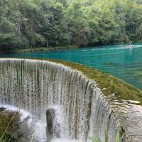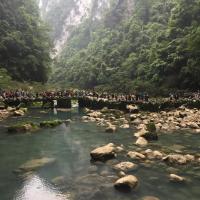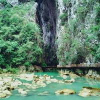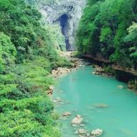 荔波大七孔景区不错,水绿的清,两岸桟道都是风景,虽然对面还在修,整体很协调,特别是天生桥,对准角度下面是碧绿的水,高高的拱形桥洞,真象凯旋门,坐船回来完整的七孔桥,建议能坐船到七孔桥还要好,整个景区大气。