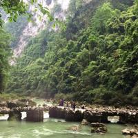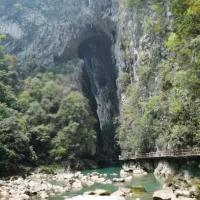 大七孔景区的主要景观是一座天生桥,步行二十多分钟,便可见到雄伟壮观的天生桥了。个人建议,在下午四点半左右到天生桥,这时阳光穿过桥洞斜射,可以获得较好的拍摄效果。