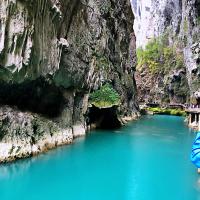 大七孔景区位于贵州黔南荔波,是以原始森林峡谷伏流地下湖为主体的景区,景观峻险神奇气势雄峻磅礴,尤其是风神洞恐怖峡地峨宫景点,洞中有瀑,瀑下有湖,湖上有窗,阳光投下形如日月星斗,极富惊险性神秘性奇特性。高百米宽数十米跨江而过的天生桥被专家们誉为“大自然神力所塑造的东方凯旋门”,观之令人肃然起敬,为大自然神力所折服。