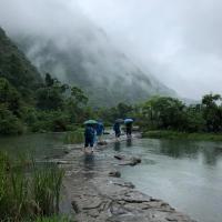 大七孔景区入口就在小七孔景区东门游览车乘车处,虽然称作“大”,但是实际面积却比小七孔小很多。有意思的是,有名的大七孔桥居然在景区外,从小七孔桥乘车过来的路上就能看到。不同于小七孔山水的秀美,大七孔水平山奇,景色更疏阔大气。游览这里千万不要错过竹筏,“客路青山外,行舟绿水前。潮平两岸阔,风正一帆悬。”正是其真实写照。登船临风,古往今来多少山色湖光尽归这片青山绿水,此种与古人的共情,只有乘船方可体会。小七孔的步栈道随山势而建,辗转弯折,野趣盎然,天生桥雄奇壮观,不容错过。可惜妖风洞正值修建,略有遗憾。