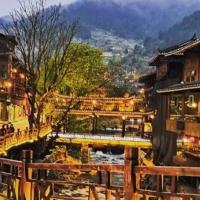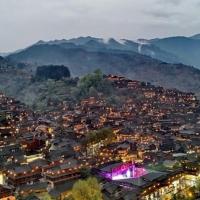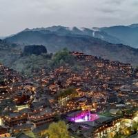西江千户苗寨由10余个依山而建的苗家村寨相连而成,有6000多户苗家人,是目前中国乃至全世界最大的苗族聚居村寨。七座风雨桥,几条古街古巷,成片的吊脚楼、梯田,黄昏时分,万家灯火更为壮观!